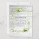 Convite de casamento verde com samambaias, flores silvestres e morangos, projetado para ser personalizado rápida e facilmente. Ideal para qualquer tema ou casamento de jardim.