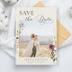 Surpreenda seus convidados com estes cartões modernos e elegantes de Save the Date com fundo marfim, lindas flores silvestres, sua foto e texto personalizados. Adicione facilmente seus detalhes clicando na opção "personalizar".
