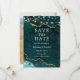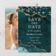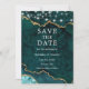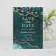 Cartão de Compromisso de Geodo de Ágata Mármore Turquesa e Dourado em Aquarela Moderno Elegante com Luzes de Corda - Foto no Verso