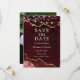 Cartão de Salvar a Data de Geodo de Ágata Mármore Borgonha e Dourado em Aquarela Moderna e Elegante com Luzes de Corda - Parte de trás da Foto