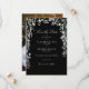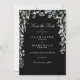 Um elegante cartão de salvar a data do casamento com flores silvestres em aquarela com detalhes da celebração em tipografia branca elegante em um fundo preto elegante. Com sua foto especial no verso. Criado por Thisisnotme©