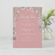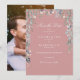 Um cartão elegante de aviso de casamento com flores silvestres em aquarela com detalhes da celebração em tipografia branca elegante em um fundo rosa poente empoeirado com estilo. Com sua foto especial no verso. Criado por Thisisnotme©