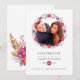 Cartões de save the date de casamento temático de safari com fotos personalizáveis de acordo com suas especificações em tons boho burgundy e dourado.
