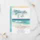 Fotos Modernas de Oceano e Praia em Aquarela para Save the Date - Um lindo Save the Date em aquarela com oceano turquesa e areia branca. O verso do Save the Date apresenta uma foto do casal feliz e um código QR que leva ao site do seu casamento.