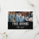 Casamento engraçado salve os cartões de data em um moderno design preto de três fotos que lê "Bebidas grátis e vamos nos casar". Personalize a parte frontal do cartão com suas fotos. Adicione seus nomes, data do casamento e local. Personalize a parte de trás do cartão com os detalhes do seu casamento. Entre em contato comigo através do botão abaixo se precisar de ajuda.