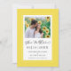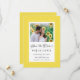 O design de cartão de casamento de foto de noivado "Save The Date" em amarelo e branco apresenta uma bela borda na tendência amarela que inclui uma elegante borda branca delicada. A caligrafia e o script são cinza carvão em um fundo branco. Um modelo moderno para data e ano complementa o design de caligrafia único. [OBS: A exibição da data do casamento, como mostrado, usa a barra vertical ou linha que pode ser encontrada acima da tecla \ no teclado ou no seu dispositivo inteligente com caracteres especiais. Você também pode personalizar com qualquer outro caractere de sua escolha.] Personalize com sua foto de noivado favorita para anunciar o seu grande dia! (Para a melhor colocação da sua foto, use uma ferramenta de edição de fotos para centralizar e cortar ANTES de carregar no site da Zazzle.) Outros designs disponíveis nesta suíte.