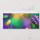 Fundo de grãos de cereais, iridescentes, textualmente, com manchas roxas, amarelas e verdes, decoradas com penas e miçangas brilhantes. feriado Mardi Gras.