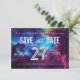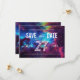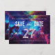 Para o casal cuja história de amor está escrita entre as estrelas...um casamento com a galáxia... exceto os cartões de data... que seguramente vão chamar a atenção de todos! Os detalhes do texto são personalizáveis e estão sobre um fundo de espaço em roxo, rosa, azul, amarelo e branco