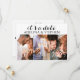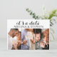 Cartões modernos, simples e elegantes de save the date com três fotos, com um layout estilo galeria e uma caligrafia de roteiro fofa e engraçada - "É uma data" (que você pode personalizar com sua própria citação e cores de casamento). Sua família e amigos vão adorar.