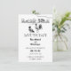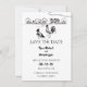 Este cartão de Save the Date de casamento apresenta duas galinhas, um galo e uma galinha apaixonados. Eles estão inseridos em um charmoso desenho de uma fazenda rural, todo feito em preto e branco.