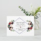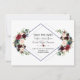 Cartão elegante com lindos buquês de flores em aquarela burgundy, merlot e azul marinho, um formato de diamante duplo, em branco e no verso as mesmas flores em fundo azul marinho. Pode ser uma ótima escolha para qualquer casamento de temporada, especialmente para casamentos de outono e inverno. Use a ferramenta Personalizar para adicionar suas informações e fazer alterações. Para itens correspondentes, visite minha Coleção Floral Geométrica Merlot Azul Marinho.