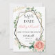 Geométrico Dourado moderno - Guarde o Convite de Data. Estes convites de folhagem verde farão o truque! este convite personalizável apresenta uma estrutura geométrica moderna com brilho falsa de ouro e preto. As bordas são enfeitadas com folhagem verde como eucalipto, bagas e flores de rosa rosa e creme. Os lados são enfeitados com brilho de ouro falso. Isso faz um convite para a folhagem moderna do excelente. Encontre outros convites para casamento de madeira em https://www.zazzle.com/oddlotweddings Basta pressionar o botão "personalizar" para mais personalização.