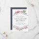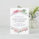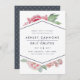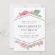 Os cartões salve a data elegantes apresentam uma mistura chic de florais de aquarela vintage e elementos geométricos modernos. Um spray de flores cor-de-água cor-de-rosa pincelada espia-se do topo e do fundo de um elemento em forma de diamante central esboçado em azul-da-noite, segurando seus nomes e detalhes de casamento em letras limpas e modernas. Cartões que se revertem para um padrão sutil de diamante pontilhado em branco sobre uma cinza azul empoeirada.