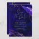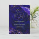 Design de casamento moderno. Geodo de aquarela com elementos de arte digital, tons de azul profundo, roxo, ouro rosa e ouro (ouro não é ouro real, mas cor), preto. Caligrafia elegante. Elementos geométricos. Negrito, moderno, contraste, saturado, notável, único.