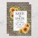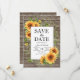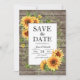 Madeira rústica e girassóis casamento salvar a data com um design de data ousado e fontes script e serif. O design apresenta lindas flores grandes e folhas verdes. Personalize com o seu próprio texto. Ideal para um casamento floral ou de verdejante primavera ou verão. Por favor, verifique a coleção para produtos de papelaria de suite correspondentes.