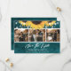 Cartão personalizado de aviso de casamento com girassol e azul turquesa rústico. Personalize facilmente este aviso de casamento azul turquesa com suas imagens e detalhes do casamento, incluindo um site de casamento.