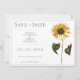 Anuncie o dia do seu casamento com este Sunflower Salve o Anúncio de Data. Save the Date design apresenta um girassol de cor d'água e um design de texto moderno. Adicione fotos e detalhes do casamento para personalizar.