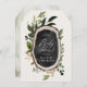 Conselho de giz de casamento russo e chá de fraldas de fatia de madeira. Com uma bela folhagem de aquarela, florais brancos, fatia de madeira e escrevendo manual de roteiros. Este convite moderno certamente define o estilo para a sua próxima festa.