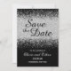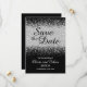 Este elegante e moderno 'Salve a Data' apresenta um confete brilhante prateado dispersando-se num fundo negro puro. Você pode personalizá-lo completamente indo para o menu personalizar. Isto é parte de uma bela suíte de casamento que inclui um convite, um menu e muitos outros essenciais.