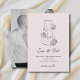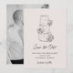 “Going to the chapel” wedding design featuring a cute hand -drawn wedding cake illustration set against a colorful background. Add your favorite photo or engagement photo to the back. This playful yet elegant design blends minimalist line art with bold color for a fresh, contemporary bridal aesthetic.