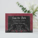 Transport your guests to a world of dark, enchanting elegance with our vintage gothic wedding save the date card. The deep, aged burgundy wine background sets the stage for a striking contrast, as bold white text emerges from intricate black text boxes. Three-dimensional gothic elements adorn the design, capturing the essence of mystery and romance. Your favorite photo fills the back, enshrouded in a black heart of twisting vines and black roses. Unleash the magic and set the tone for an unforgettable wedding day. Created by Simply Farmhouse Press.