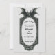 Até a morte do morcego gótico... para salvar o cartão de data em um fundo de cinza. Um morcego maravilhoso supera o quadro floral ornamentado deste cartão, que é escuro e sangrento. Perfeito para o seu casamento gótico ou Halloween!