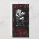 Estes vermelhos góticos vitorianos, negros e brancos salvam os cartões de fotos de data são perfeitos para casamentos de Halloween, com um ornamentado, antiquado e irado, rachado com a idade, coberto de teias escuras, contra um fundo preto ligeiramente texturizado e modesto com relâmpagos estalidos. O texto é uma combinação de script grunge, caracteres clássicos de letras de blocos fáceis de ler e estilo antigo inglês medieval. Personalize facilmente com sua própria foto e texto de noivado!