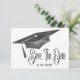 Uma formatura simples e bonita, pode salvar o cartão de data para enviar para a família e os amigos. Apresenta um boné de formatura com a aparência de cor d'água em tons de preto e cinza. Um cartão maravilhoso, moderno e simples, para salvar uma data para uma formatura.