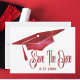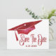 Uma formatura simples e bonita, pode salvar o cartão de data para enviar para a família e os amigos. Apresenta um boné de formatura com aspecto de cor d'água vermelha. Um cartão maravilhoso, moderno e simples, para salvar uma data para uma formatura.