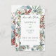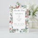 Este design apresenta pinheiro, eucalipto, morangos vermelhos e azuis, e outras folhagem verde, ao redor de uma fina falso estrutura dourada e caixa de texto branca. Faz parte do "Winter Christmas Greenery Wedding Suite", conjunto de cartas criado pela "Simply Farmhouse Press".