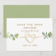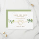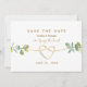 This elegant greenery wedding save the date card features a clean minimalist design with soft eucalyptus greenery accents and a delicate gold rope heart, creating a timeless and romantic announcement for your wedding day.