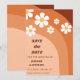 Surpreenda seus amigos e família com esses Cartões salve a data legal com boho terracotta arco-íris, padrão de margarida e texto personalizado. Adicione facilmente o texto desejado clicando na opção "personalizar este modelo".