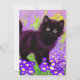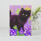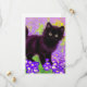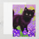 Cartão com um gatinho preto Gustav Klimt! Esta beleza de olhos largos se coloca num campo verde de flores roxas. Um presente pensativo para amantes de gatos e entusiastas de arte austríacos!