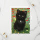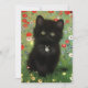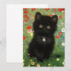 Cartão com um gatinho Gustav Klimt! Este gatinho preto veste um colar prateado e se senta num campo de flores vermelhas, azuis, brancas e amarelas. Um presente maravilhoso para amantes de gatos e entusiastas de arte austríacos!
