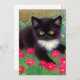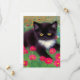 Cartão com um gato gustav Klimt tuxedo! Este adorável gatinho preto e branco se senta num campo de flores vermelhas, azuis, brancas e laranja. Um presente incrível para amantes de gatos e entusiastas de arte austríacos!