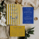 Reserve A Data Handwritten Blue Yellow Pinstripes Italy Wedding
