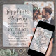 Announce the joyful news of your upcoming reception-only wedding celebration with unique custom photo overlay "Happily Ever After Party" save the date invitations. All wording is simple to personalize for a vow renewal ceremony, sequel wedding, 1st anniversary, or post-elopement party. Include the marriage date, location, website, or any other important details of your choice. (IMAGE PLACEMENT TIP: An easy way to center a photo exactly how you want is to crop it before uploading to the Zazzle website.) The elegant chic black and white design features two pictures of the newlywed couple, trendy modern handwritten script calligraphy, and stylish typewriter typography. Whether you eloped, had a smaller downsized minimony / micro wedding, or your special day celebration had to be rescheduled due to a covid pandemic postponement, the happily ever after party can still get started. Congratulations to the bride and groom!