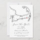 Faça o tom do seu casamento em Harwich Port com este moderno preto e branco Salve a Data com um mapa elegante de Cape Cod na frente e uma foto personalizável no verso. Perfeito para casamentos no Wychmere Beach Club, Wequassett Resort, ou The Sea View, este design emparelha estilo com conveniência, oferecendo endereçamento de envelope gratuito. Anuncie seu dia especial em charme costeiro sem esforço! Trabalho de arte por Designs de Mapa Costeiro.