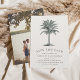 Planejar um casamento tropical, ao lado da praia, havaiano ou destino? Anuncie seu encontro com nossos cartões salve a data de colheita da ilha apresentando uma ilustração de palmeira tropical estilo gravado em verde-caçador negro. Adicione seus detalhes de casamento em cinzas de carvão escuro; modelos de texto personalizados fornecem espaço para seus nomes, data de casamento, local e site de casamento. Adicione uma foto de noivado à parte traseira da placa, se desejar.