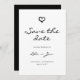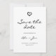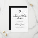 Heart Personalised Wedding Save The Date Card Personalize com seu texto para seu próprio casamento exclusivo Salve o cartão Date. © Olliwerks Inc. Simples Clássico Elegante Minimalista Linha Coração Minimalista Arte Personalizar Texto Script Font White Black Casamento Guardar A Ficha
