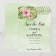 Aquarela moderna de hibisco rosa e branco e folhas exóticas em fundo verde