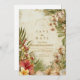 Celebrate your wedding day with timeless tropical elegance. This romantic design features lush hibiscus blooms, soft palm leaves, and painterly botanical details layered over a warm, vintage-inspired background. The refined typography and airy island palette create a sophisticated destination wedding feel that’s perfect for coastal venues, tropical resorts, or summer celebrations.