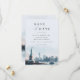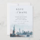 Celebre seu amor contra o pano de fundo icônico da cidade de Nova York. Este save the date elegante apresenta uma ilustração deslumbrante aquarela da Lady Liberty e do horizonte da cidade de Nova York. A tipografia bonita e o design minimalista criam um visual sofisticado e atemporal. Perfeito para um casamento de destino ou uma celebração inspirada em Nova York. Personalize o save the date com a data do seu casamento, nomes e uma mensagem personalizada.