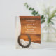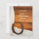 Faça um tom casual, mas clássico, para seus futuros núpcias com o charmoso Casamento de Ferradura Branca e Casamento Ocidental Salve o Anúncio de Data. Este rancho chic ou casamento de fazenda rústico mantém o cartão de data com uma fotografia fino e digital de uma ferradura enferrujada com seda branca e um fundo de madeira marrom.