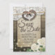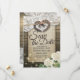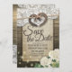 Casamento moderno estilo russo country Salva a data Modelos do Cartão de Convite - Casal do coração velho com Arco de Corda e Lace Branco, Flor de Hydrangea, Luzes de Corda e Lata de Quebra no Fundo da Madeira do Velho Celeiro. Um Design perfeito para o seu grande dia. Todo estilo de texto, cores, tamanhos podem ser modificados para ajustado das suas necessidades!