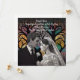 Casais de casamento feitos de papel colocados sobre um fundo de árvores de muitas cores.