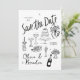 Set the tone for a joyful celebration with this whimsical, hand-drawn Save the Date card! Featuring charming black-and-white sketches of wedding icons — cake, champagne, flowers, and more — this playful design blends casual charm with artistic flair.