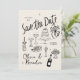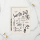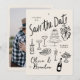 Set the tone for a joyful celebration with this whimsical, hand-drawn Save the Date card! Featuring charming black-and-white sketches of wedding icons — cake, champagne, flowers, and more — this playful design blends casual charm with artistic flair.