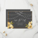 A natureza simples e elegante desta salva de data é perfeita para o seu dia especial. Este design apresenta um fundo de cinza de carvão, luzes de cordas e tipografia personalizada branca.