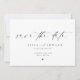 A Elegante Moderna e Preta Foto Branca Salvar A Data exude a sofisticação com seu elegante design preto-e-branco, destacando sua foto favorita ao lado da elegante caligrafia de script. Este simples convite, porém chic, abraça um estilo minimalista, fazer perfeito para qualquer casamento moderno - me avise se você precisar de ajuda com a personalização!